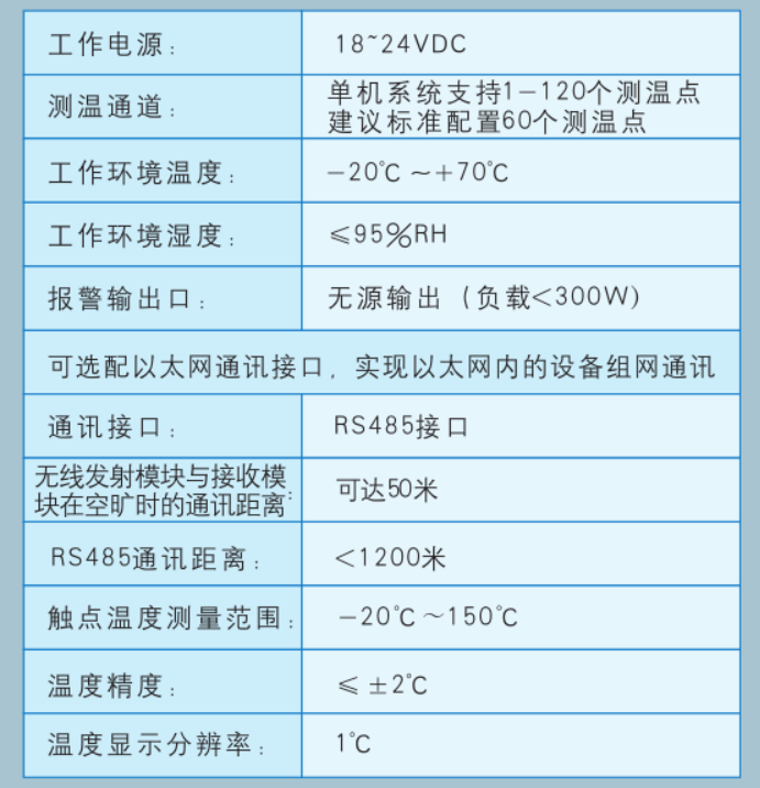 1) 多路無線測量溫度實(shí)時數(shù)據(jù)顯示,建議單機(jī)標(biāo)準(zhǔn)配置60個無線溫度傳感器。